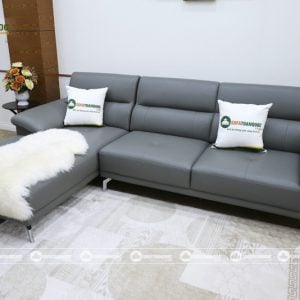 Mẫu sofa góc trái màu xám sử dụng da công nghiệp bền đẹp có tuổi thọ cao. Sử dụng chất lượng đệm chắc chắn, mập mạp đảm bảo mức độ êm ái của người sử dụng. Kiểu dáng gọn nhẹ kết hợp kích thước nhỏ gọn có thể bài trí nhiều không gian khác nhau. Đặc biệt là những không gian chung cư hiện nay.
