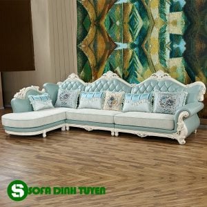 Ghế sofa phong cách hoàng gia đẹp sang trọng tinh tế. Kết hợp chất liệu vải nỉ bọc mang tới màu sắc ấn tượng. Nhẹ nhàng nhưng vẫn rất đậm nét phong cách quý phái cho người sử dụng. Nhờ đó chủ nhân có thể có thêm nhiều ý tưởng trong việc trang trí phòng khách gia đình hơn. Nhất là những gia đình có điều kiện kinh tế sở hữu những phòng khách hạng sang, biệt thự cổ kính.