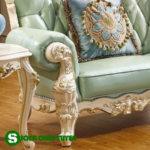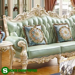Bộ ghế sofa màu xanh tinh tế sử dụng chất liệu da bọc hạng sang ai cũng yêu thích sử dụng. Kết hợp với phong cách hoàng gia quý tộc tinh tế. Đặc biệt thích hợp với những phòng khách cao cấp, lâu đài hoặc biệt thự. Chắc chắn không gian gia đình sẽ có nhiều thay đổi khi quyết định lựa chọn bộ ghế sofa hoàng gia này.