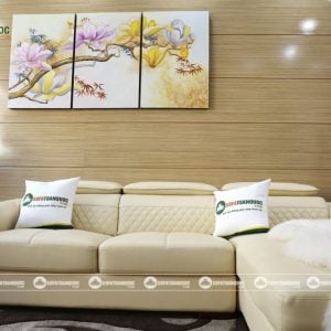 Sử dụng gam màu trắng kem cực tinh tế mang tới cảm giác sạch sẽ, mát mẻ cho căn phòng. Giúp không chỉ bộ ghế sofa đẹp hơn mà căn phòng cũng thông thoáng hơn. Nếu lo lắng màu trắng có thể khó vệ sinh thì đừng quá lo lắng. Chất liệu da công nghiệp bền đẹp sẽ đảm bảo khả năng vệ sinh và làm sạch nhanh chóng. Không tốn nhiều thời gian cho chủ nhân.