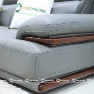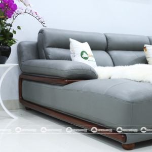 Nếu như những mẫu ghế sofa da góc khác sử dụng viền inox thì mẫu sofa da microfiber lại sử dụng viền gỗ sang trọng đẳng cấp. Các chất liệu gỗ tự nhiên luôn chiếm được tình cảm khá ưu ái từ khách hàng. Phủ trên mặt viền gỗ này chính là lớp sơn PU sáng bóng. Bên trong chúng đã được xử lý kỹ càng không bị cong vênh mối mọt.