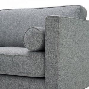 Một gối ôm nho nhỏ đi kèm với ghế sofa bọc nỉ màu xám để thuận tiện hơn cho khách hàng khi muốn nghỉ ngay trên ghế sofa. Khi cần chúng có thể trở thành những chiếc gối đầu êm ái và thoải mái, giúp đầu cổ được nâng đỡ, không bị đau khi sử dụng. Sử dụng loại đệm bông đảm bảo đàn hồi tốt.