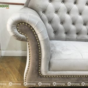 Nổi bật với những viền đinh tán được đóng dọc theo bộ ghế. Kết hợp với hệ thống những ô lõm nhỏ trên phần tựa lưng. Đây đều là những kỹ thuật đặc trưng của phong cách tân cổ điển. Nhờ đó mà đem lạ vẻ đẹp khác so với những bộ ghế sofa khác. Thích hợp sử dụng trong những phòng khách hiện đại hoặc cổ điển.