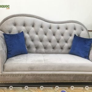 Sofa văng kiểu tân cổ điển lạ mắt cho phòng khách gia đình. Sử dụng chất liệu vải nhung mềm mại êm ái thích hợp cho những không gian sang trọng. Phong cách tân cổ điển nổi bật với hệ thống tay vịn và kỹ thuật may rút cúc trên tựa lưng.